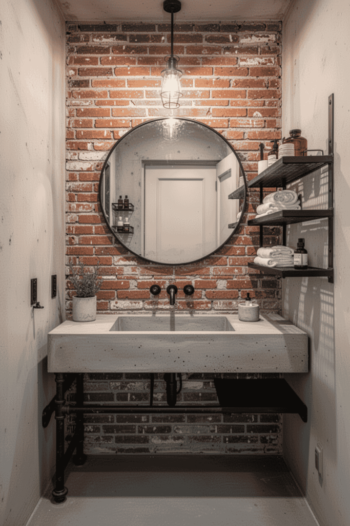 Concrete countertops are an excellent way to add an industrial touch to your farmhouse powder room. Concrete is extremely durable and easy to maintain, and its natural imperfections add character and interest to the space. You can choose to leave the concrete in its natural grey color, or you can add pigments to create a custom color that matches your design scheme.